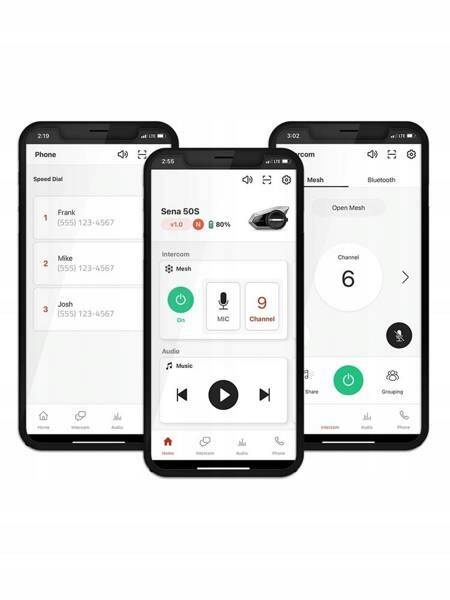 50S-10 zapewnia nie jeden, ale trzy różne tryby interkomu dostępne dla motocyklistów Sena: Multi-Channel Open Mesh Intercom™, Group Mesh Intercom™ i Bluetooth Intercom.