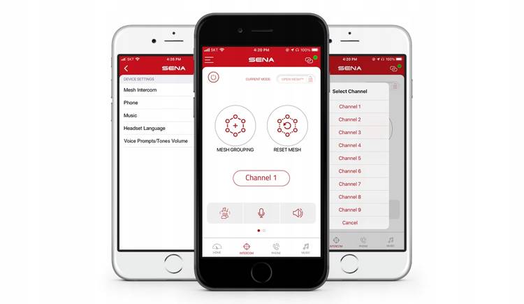 Multi-Channel Open Mesh pozwala motocyklistom komunikować się z praktycznie dowolną liczbą uczestników w sieci Mesh na odległość do 5 mil / 8 km. Open Mesh oferuje również opcje wielokanałowe, z imponującą liczbą dziewięciu dostępnych kanałów. Można przełączać się między częstotliwościami kanałów, aby prowadzić rozmowy z różnymi grupami motocyklistów w większej grupie Open Mesh.